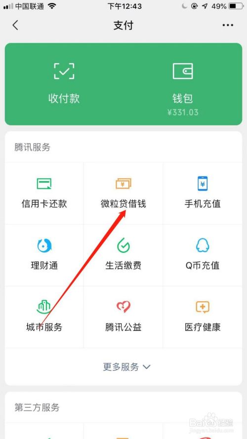 进入后,点击“微粒贷”借钱。