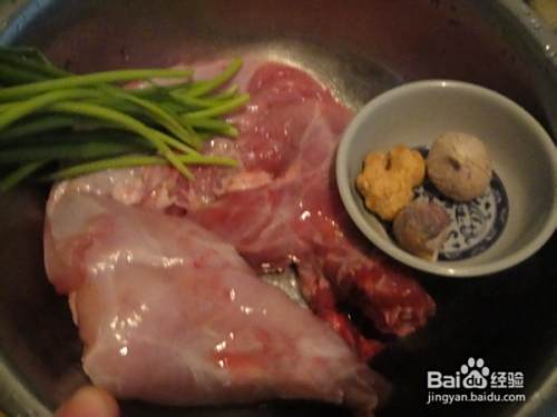 准备好食材:兔肉、姜蒜葱、豆鼓、豆瓣,食用油、花生等