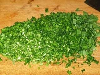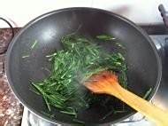 倒入韭菜,翻炒几下加入一勺盐,再翻炒一分钟。