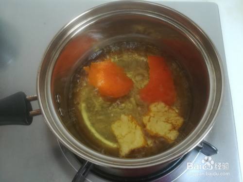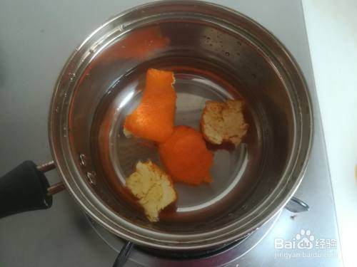 煮锅加入纯净水,放入桔皮。
