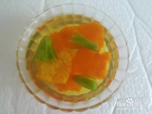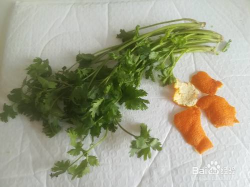 准备桔皮和香菜。