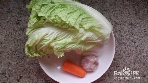 准备食材:大白菜、红萝卜、蒜头。