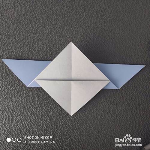 沿黑线向上翻折,折出翅膀,两边都是一样。