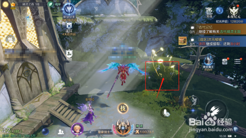 花圃,女神像背后,上台阶右手边的草丛里面。