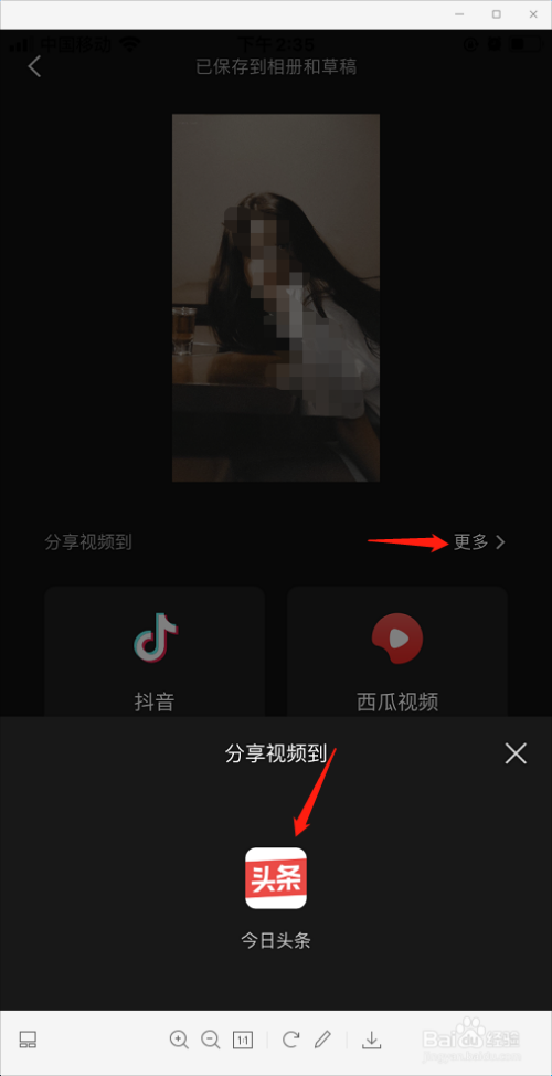 弹出这个界面,分享视频到今日头条,点击“今日头条”