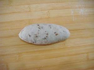 取一个小面团,用手掌压扁,然后用擀面杖擀开呈椭圆形。