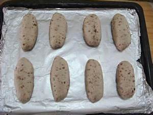 将整形好的橄榄形面团摆在烤盘上,进行最后发酵。