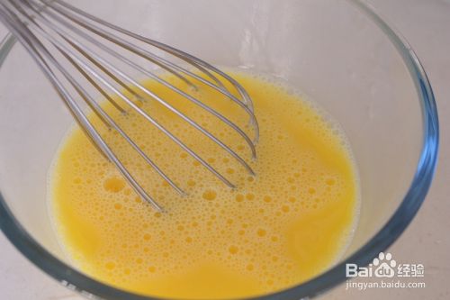 鸡蛋打散,加入1:1的水,搅拌均匀