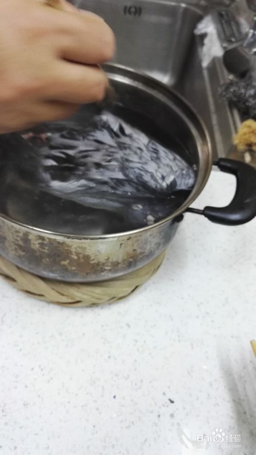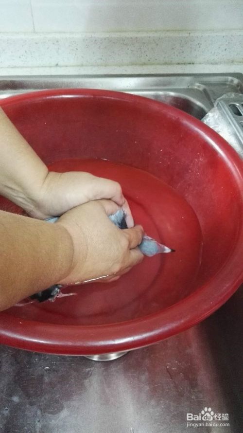 将鸽子让水高温水中,保证每个地方都被高温水烫到。特别是羽毛比较多的地方。