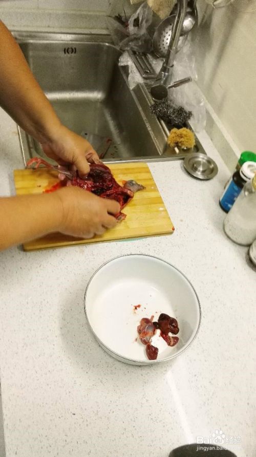 将鸽子肚子破开,取出内脏,除了肝脏、心脏、胃其它内脏都不要。请留意,破开之后不能洗鸽子了。