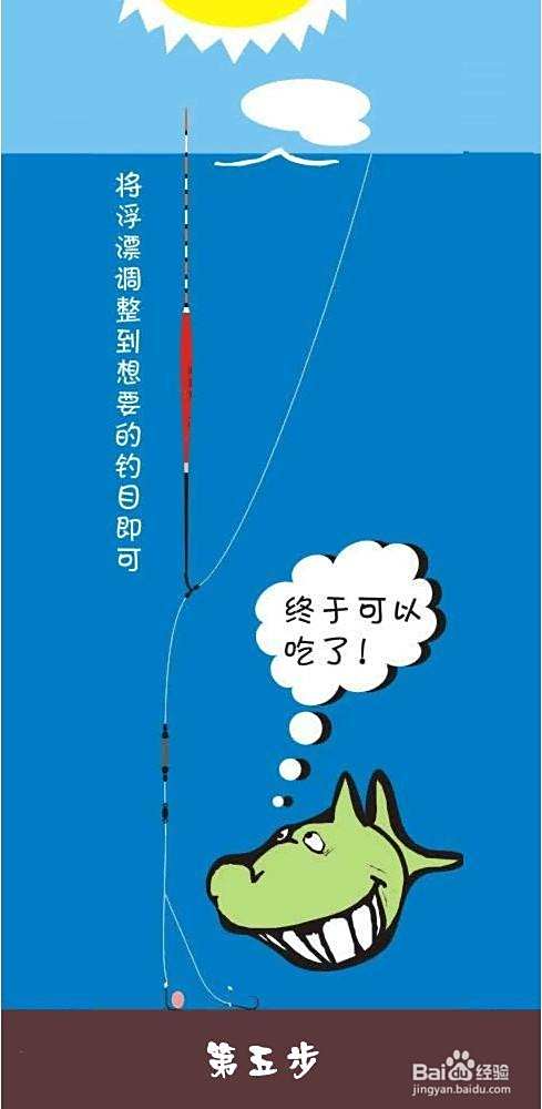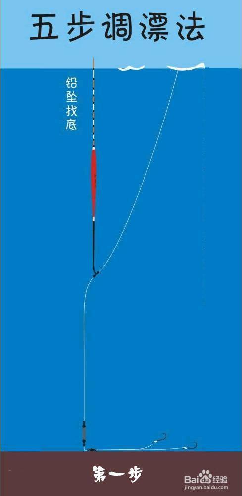 调漂第五步:找到底之后,调整浮漂的位置,直到露出水面自己所想要垂钓的钓目为止。比如我想钓2目,这里就露出2目。如果在第三步时我们调的时候5目,那就叫做调5钓2。