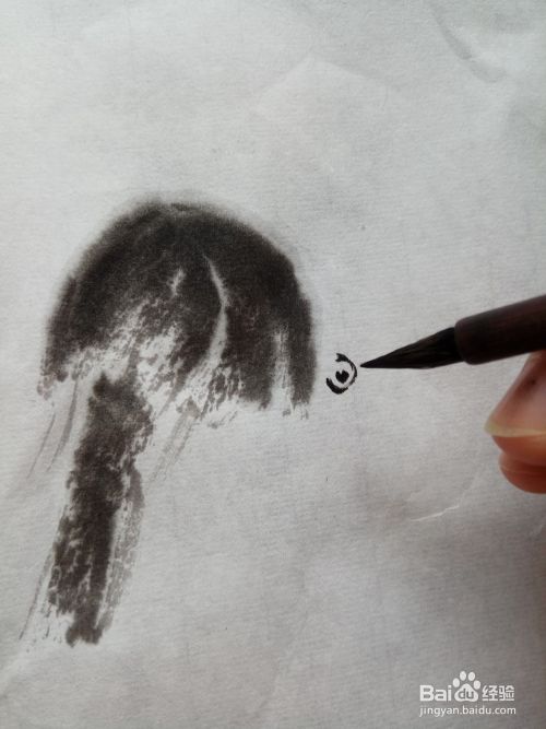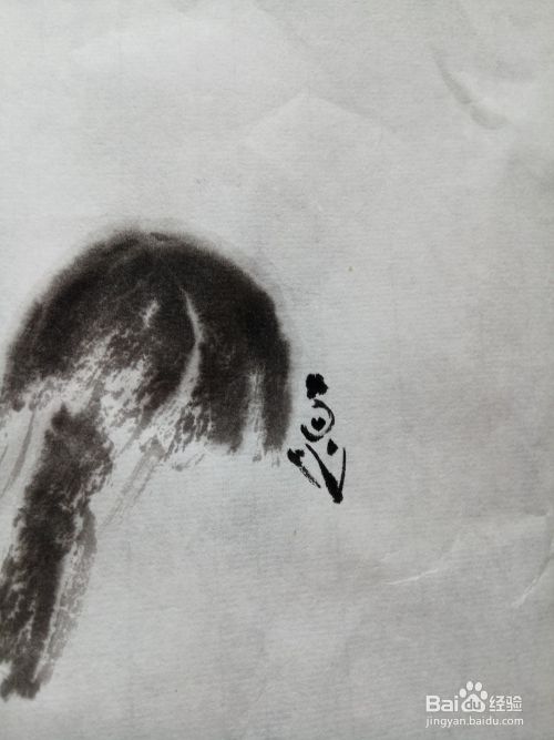 顺势也把鸟的尾部,擦出来,背部过去会露出一点小鸟的头,听话小鸟的眼睛用重墨画出