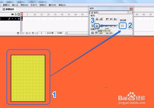 打开“排列”面板,框选矩形,然后单击“到场景”按钮,接着单击“垂直中间分布”按钮,这样矩形和组件编辑窗口就在一条直线上了。