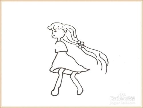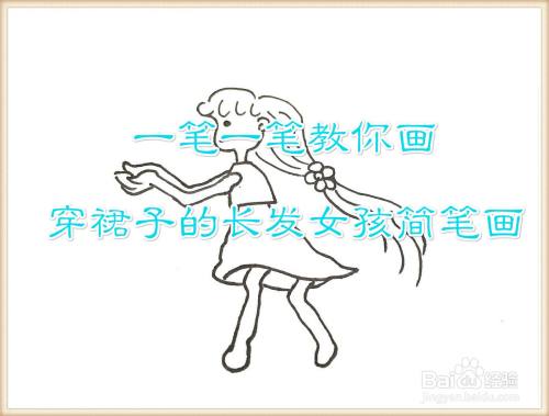 最后把女孩的手画出来就可以了,如图所示,穿裙子的长发女孩简笔画就画好啦!