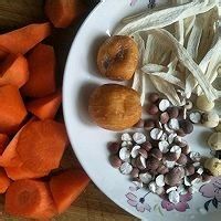 胡萝卜削去外皮切滚刀块。莲子,芡实,干淮山,洗干净。