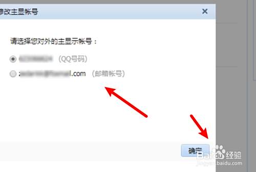 在弹出的窗口上点击选中邮箱账号作为主显账号,点击确定按钮就可以了。