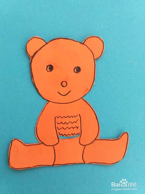 最后把小熊的眼睛,鼻子,嘴巴,和衣服的花纹,小熊就剪好了
