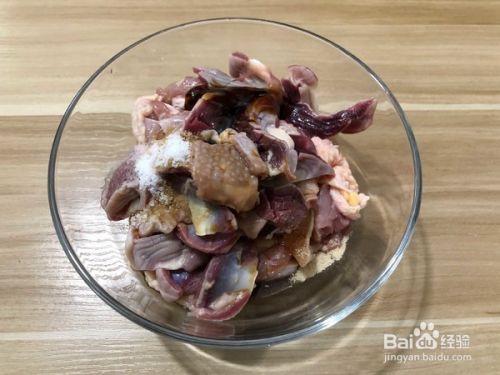 把腌鸡肉中的材料都加入料理碗中拌均匀腌制一下