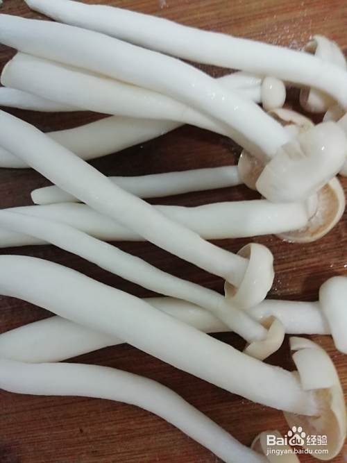 在将蘑菇也清洗干净,将蘑菇切成细丁。