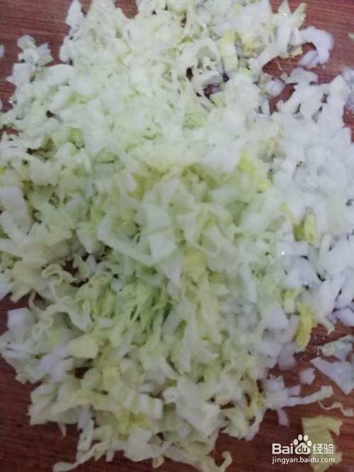 首先,那我们将白菜洗干净切成丁。