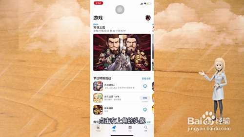 进入App Store后,点击右上角的头像。
