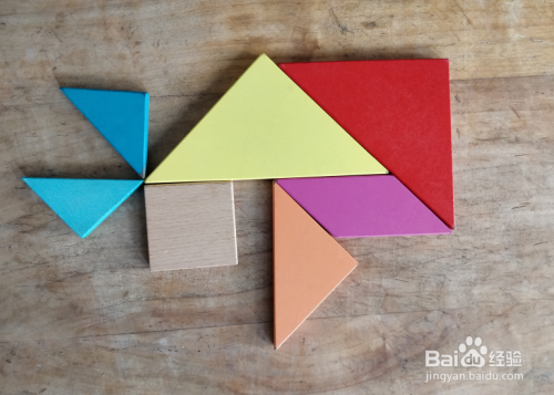 摆上正方形,放在左侧大三角形的下面挨着,左端一齐,如图。
