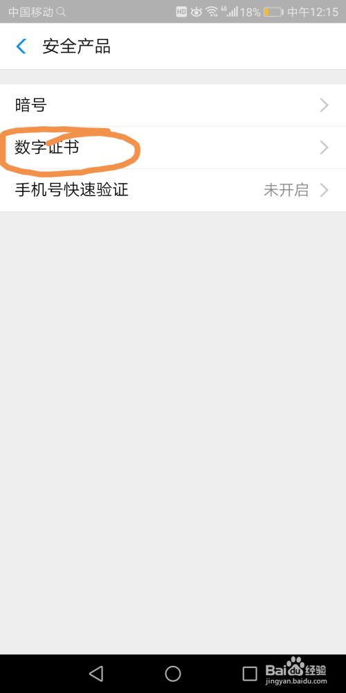 最后是在打开的页面里找到“安全设置”点击打开,在打开的页面里找到“安全产品”点击打开,在打开的页面里找到“数字证书”点击打开,在打开的页面里找到“安装数字证书”点击选中即可。