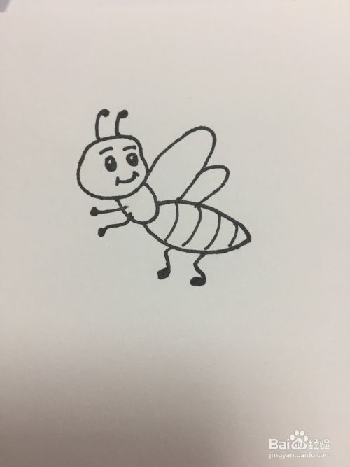 然后画上可爱的小脚和手,简笔画小蜜蜂就完成喽