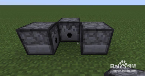 紧接着将发射器摆放好,然后把红石火把作为触发器摆发发射器中间,如下图所示。