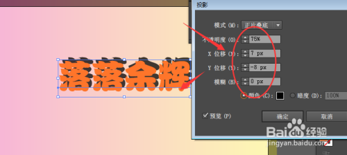 在投影属性设置中,打开预览,然后调节上面x/y数值以及模糊数值,输入负值就是相反的方向了