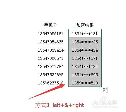 1、在数字旁边的那一列插入公式:=LEFT(E6,4)&"****"&RIGHT(E6,3)