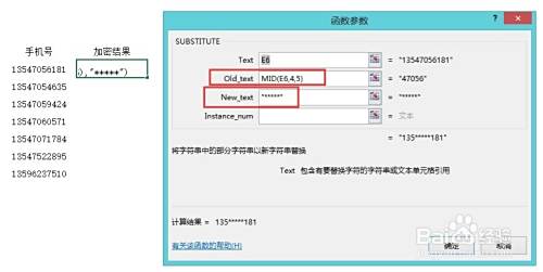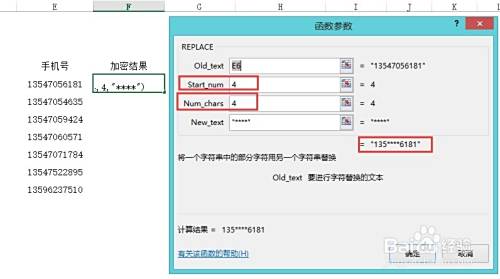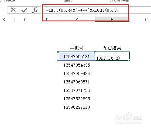 本次的公式,REPLACE(E6,4,4,"****"),隐藏手机号第4位到底7位的数字.