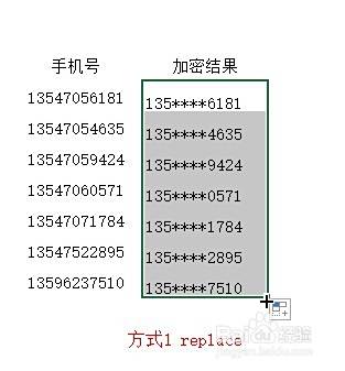例如 我们要将下图中的 几组数字(类似手机号的组合)的中间4位数改成星号“****”