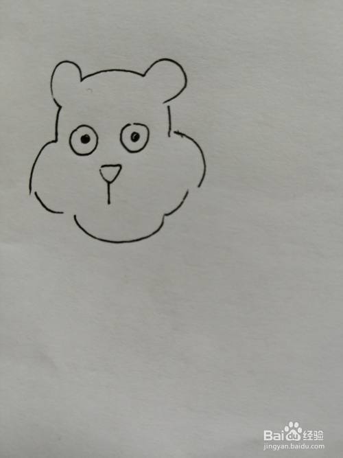 第三步,接着在可爱的小松鼠的眼睛下面画出小鼻子,画法也比较简单。
