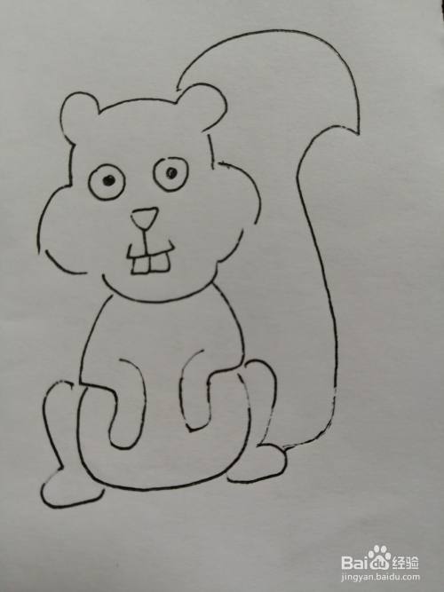 第七步,最后把可爱的小松鼠的长长尾巴画出来。可爱的小松鼠就画好了。