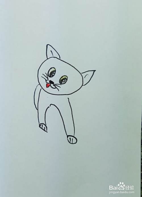 用线条和曲线画出小猫咪的尾巴部分,小猫咪的身体轮廓就画好了。