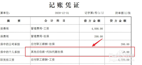 个人承担的部分由公司先代扣代缴,最终将在实发工资中进行扣除。