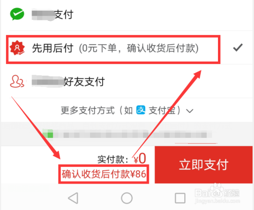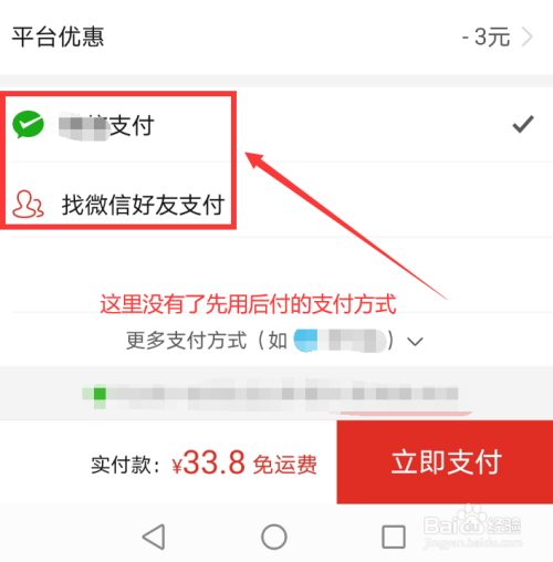 然后继续选择购买商品,直到支付方式没有【先用后付】的支付方式