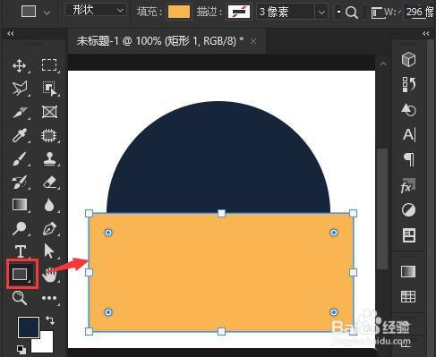 第二步,随后点击矩形工具画一个黄色填充的长方形;