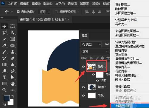 第五步,打开图层面板,右键矩形图层,点击创建剪贴蒙版按钮即可。
