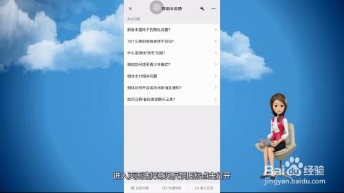 打开微信设置,进入选择页面帮助与反馈这一栏打开,进入页面选择意见反馈图标点击打开。