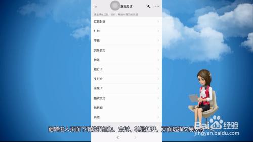 翻转进入页面下滑选择红包、支付、转账打开,页面选择交易支付。