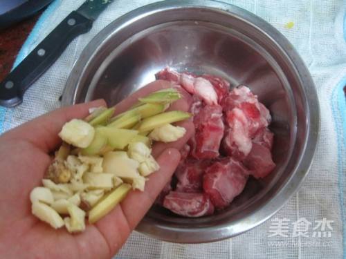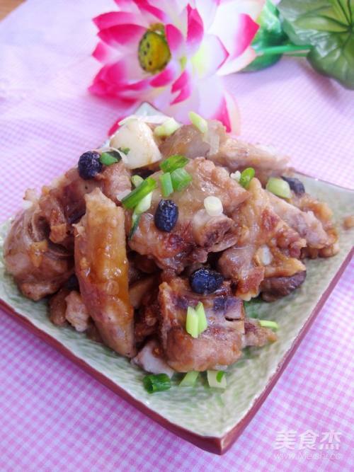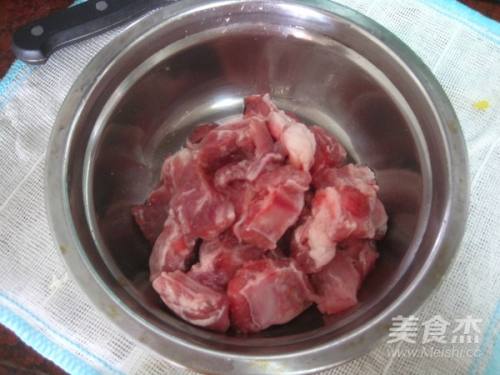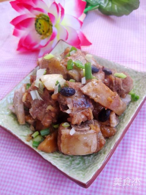9把腌制后的排骨倒入盘中放芋头上面摆均匀。