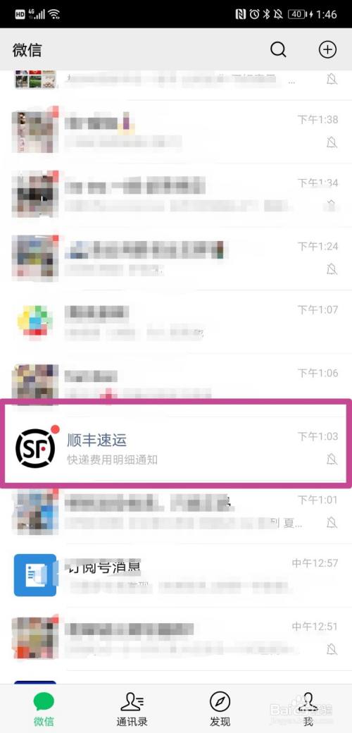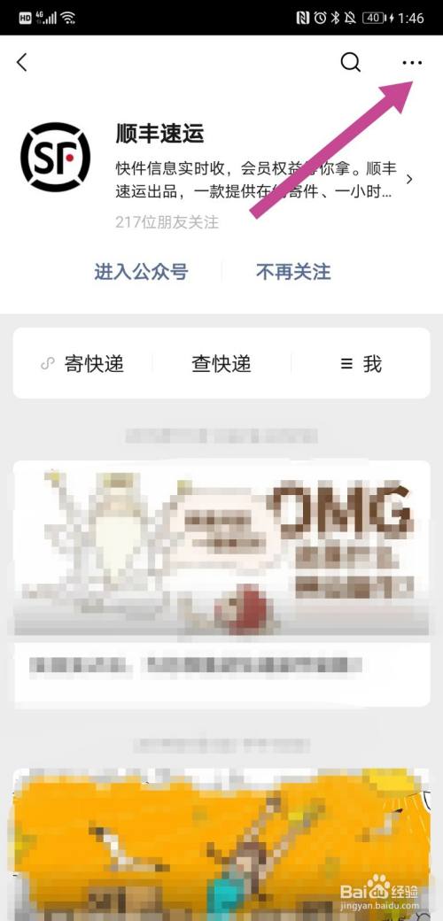 我们拿顺丰速运做例子,首先锁定你想要关闭消息提醒的微信公众平台。