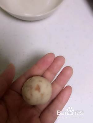 揉好的土豆团子,像我图中这样,面粉能将土豆肉末包裹好就可以了,大家也可以加其它蔬菜哦