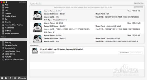 2更新完bootloader以后,我们要确保ESP分区安装好了一些必不可少的驱动(kexts)。打开Clover Configurator,点击左侧 "Mount EFI" 挂载EFI分区: