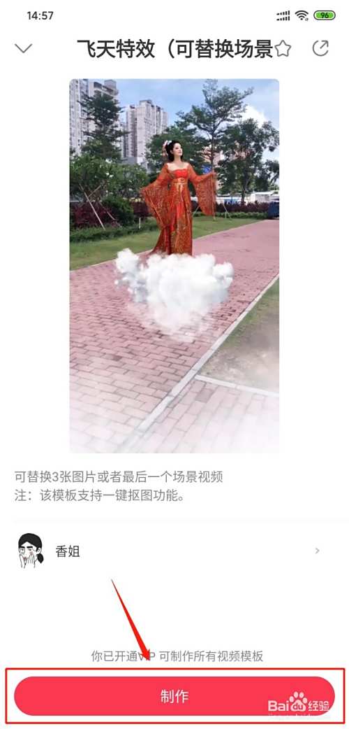 点击模板下方的制作按钮,就可以用你觉得好玩高效的图片来制作飞天特效啦!