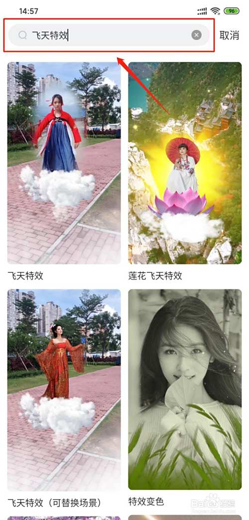 在模板分类的输入栏,输入关键词“飞天特效”