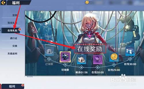 如图所示随后选择【在线礼包】点击领取【在线奖励】