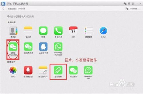 这时候跳转到恢复界面,有很多图标,说明这些都是可以恢复的,选择微信聊天记录点击,软件开始对手机进行扫描,等待扫描结果。